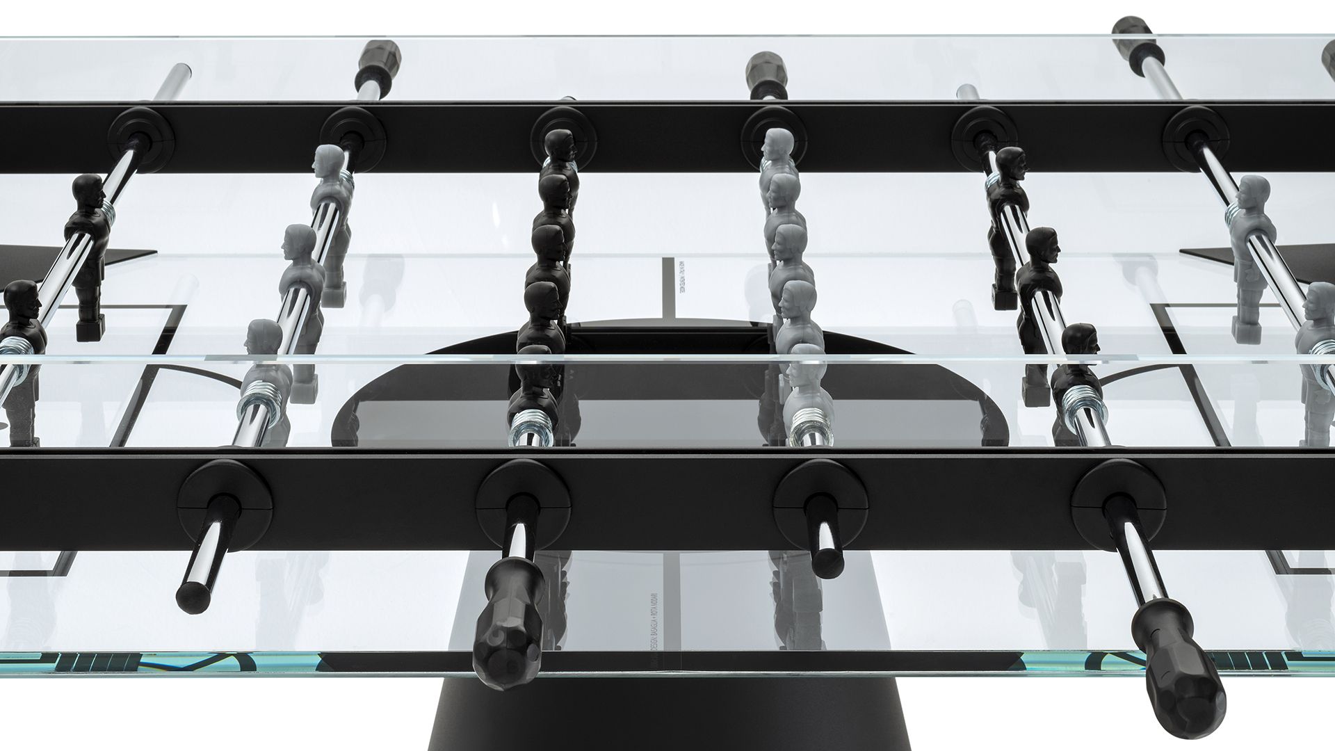 Ghost has an elegant and charming attitude, it is a precious presence with a subtle personality. It is not a “just look don’t touch” object but it is a professional table football suitable for matches between both champions and lovers of this game. It has a transparent crystal made playing field and metal finishings.